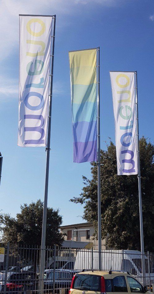 Stampiamo bandiere su tessuti morbidi e leggeri, perfetti per il lancio e facilmente manovrabili. Graphic Line realizza stampe digitali personalizzabili, mantenendo i colori brillanti e valorizzando ogni dettaglio delle bandiere. Ogni bandiera è fornita di una guaina laterale, pensata per inserire comodamente l’asta.